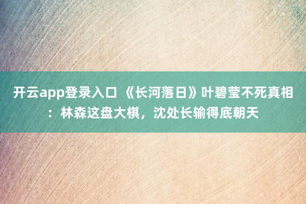 开云app登录入口 《长河落日》叶碧莹不死真相:林森这盘大棋,沈处长输得底朝天