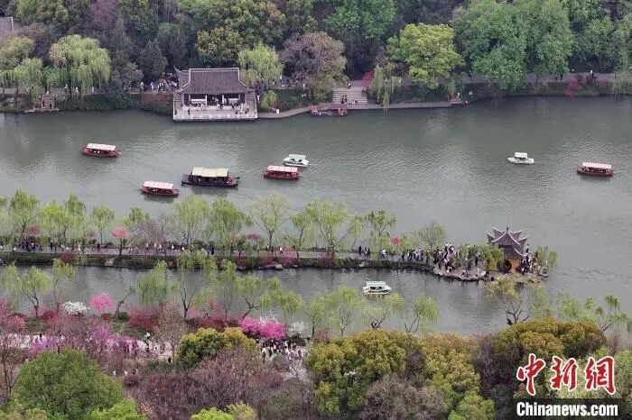 费力图:江苏扬州瘦西湖自得区游东谈主如织。当日是明朗假期第一天,大家纷纷走削发门,踏青游玩,乐享春光。(无东谈主机像片)中新社记者泱波摄