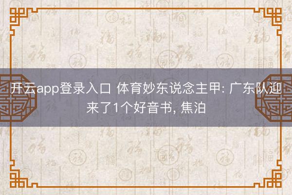 开云app登录入口 体育妙东说念主甲: 广东队迎来了1个好音书, 焦泊