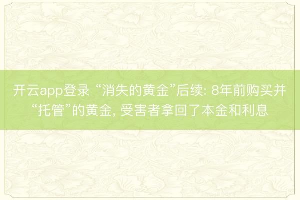 开云app登录 “消失的黄金”后续: 8年前购买并“托管”的黄金, 受害者拿回了本金和利息