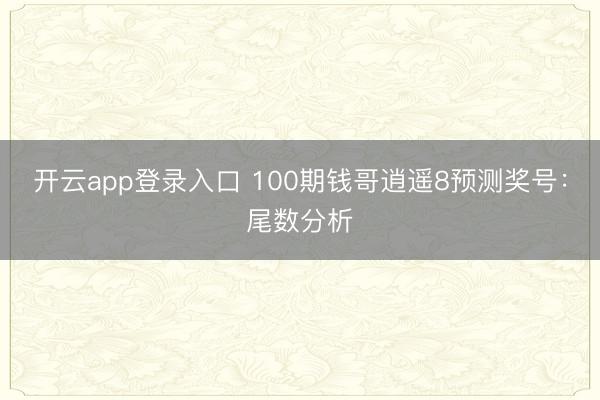 开云app登录入口 100期钱哥逍遥8预测奖号:尾数分析