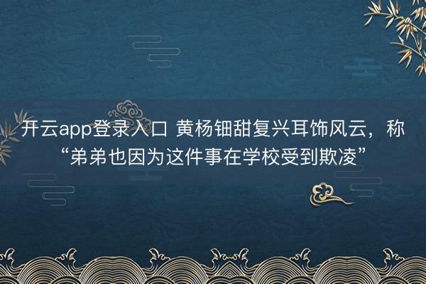 开云app登录入口 黄杨钿甜复兴耳饰风云,称“弟弟也因为这件事在学校受到欺凌”