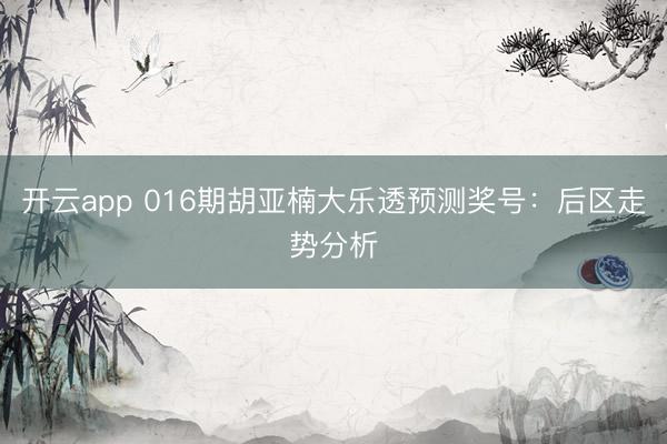 开云app 016期胡亚楠大乐透预测奖号:后区走势分析