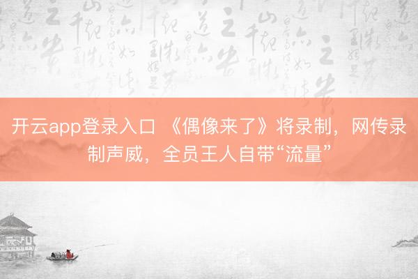 开云app登录入口 《偶像来了》将录制,网传录制声威,全员王人自带“流量”