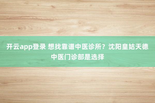 开云app登录 想找靠谱中医诊所?沈阳皇姑天德中医门诊部是选择