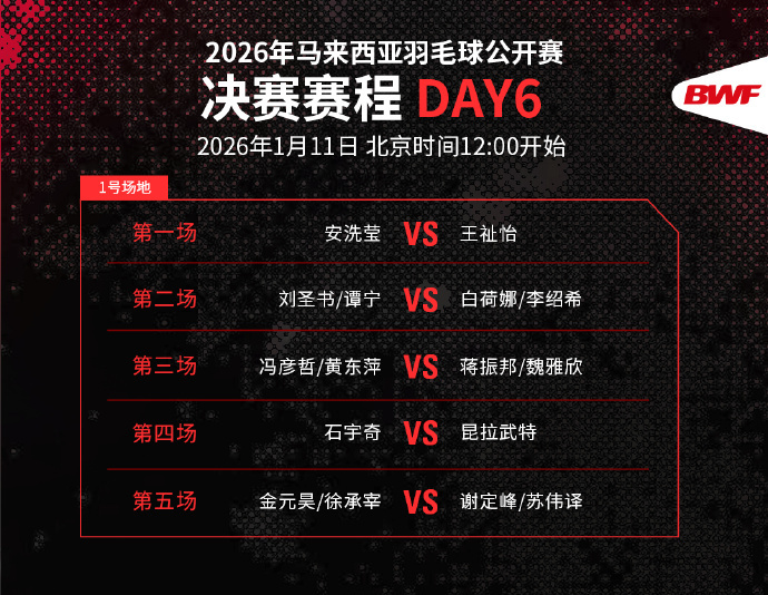 今天,2026年马来西亚羽毛球公开赛5个单项将决出冠军,中国队在男单、女单、女双、混双4项比赛中闯入决赛,并已提前锁定混双冠军。