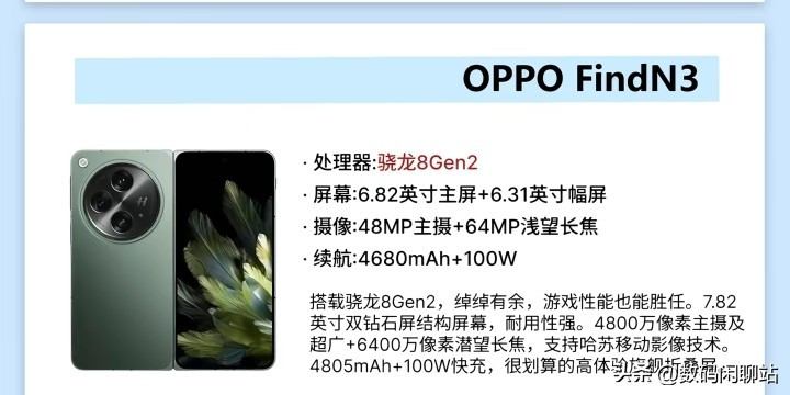 在折叠屏畛域,OPPO Find N3凭借其私有的方法和广大的功能脱颖而出。这款手机搭载了骁龙8 Gen 2处理器,性能充沛,卤莽畅通开动各类诓骗。其表里双钻石屏幕结构不仅耐用性强,况且露馅着力出众,7.82英寸的主屏为多任务处理和移动办公提供了极大的便利。影像方面,Find N3配备了4800万像素主摄及6400万像素潜望长焦,接济哈苏移动影像时代,闭塞了折叠屏手机拍照一般的刻板印象。4680mAh电板互助100W超等闪充,让这款大屏旗舰在续航上也毫无压力,是高端商务东说念主士和科技尝鲜者的最好遴荐。