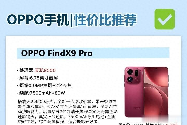 2026年4月,智妙手机阛阓迎来了新一轮的换机高潮,OPPO看成行业内的领军品牌,凭借其深厚的时代集合和精确的家具布局,在高端旗舰、影像拍照以及性价比等多个畛域齐推出了极具竞争力的家具。关于破钞者而言,濒临五花八门标机型,若何遴荐一款既顺应自己需求又具备高性价比的手机显得尤为遑急。基于当今的阛阓响应和家具成就,咱们为您梳理了六款现时最值得购买的OPPO手机,涵盖了从顶级影像旗舰到实用性能机型的不同价位段。