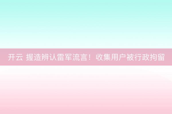 开云 握造辨认雷军流言!收集用户被行政拘留