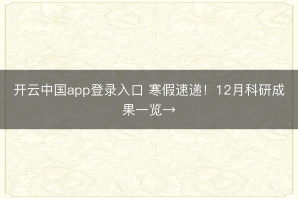 开云中国app登录入口 寒假速递!12月科研成果一览→
