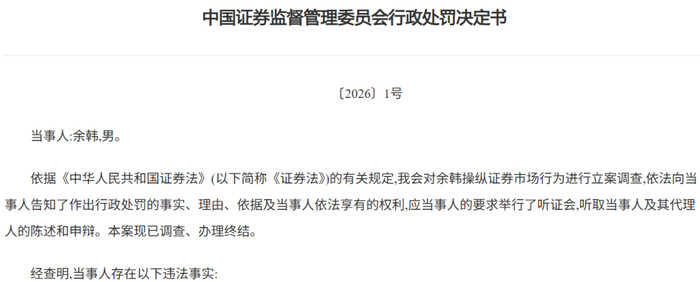 开云app登录 证监会1号罚单!余韩,被罚没超10亿!