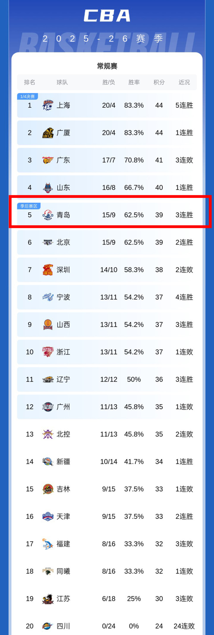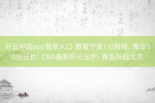 开云中国app登录入口 跟着宁波1分险胜, 青岛30分狂胜! CBA最新积分出炉: 青岛反超北京