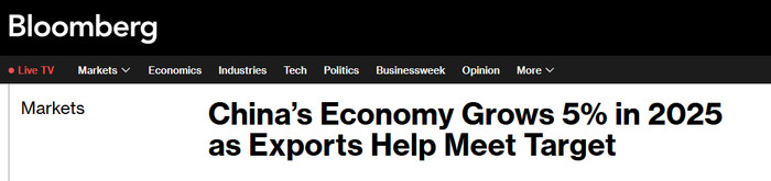 国家统计局1月19日公布数据显示,中国2025年国内生产总值突破140万亿元人民币,同比增长5.0%。中国的经济表现引发多家国际媒体关注。