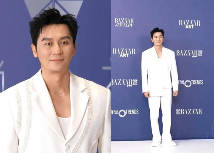 李晨穿了一套纯白色西服,整体造型看着中规中矩,略显平淡。