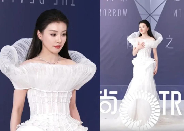 鲜少在内地时尚活动露脸的林依晨,穿了一条一字肩白色皱褶长裙亮相。如今的她比起前些年更瘦一些,但还好脸没有因此瘦到凹陷,上镜拍照还是自然饱满的。