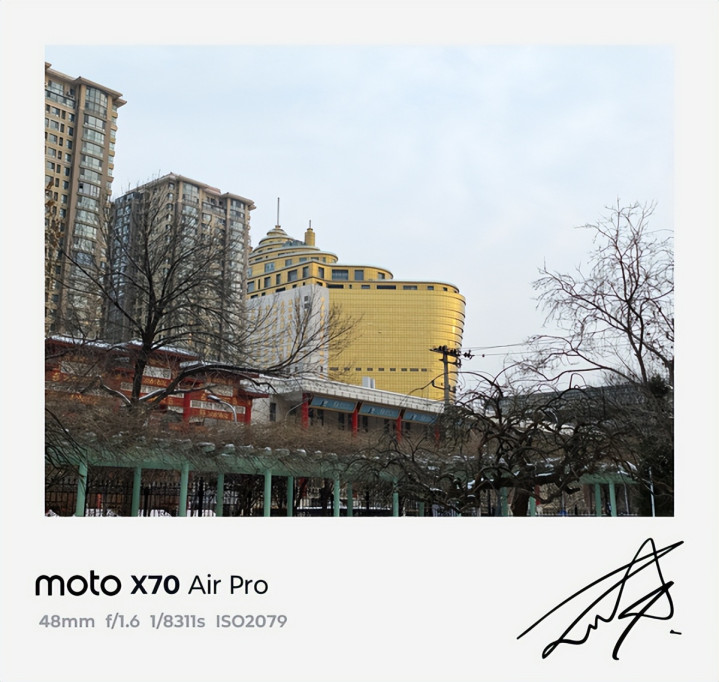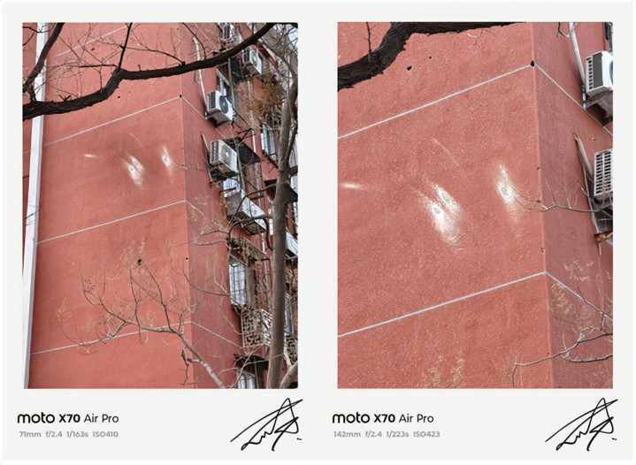 在长焦方面,联想moto X70 Air Pro的3倍潜望长焦不仅解析力出色,更凭借AI优化实现了“远可拍细节,近可拍微距”的全能表现。值得重点说的是其AI超级变焦功能。当变焦倍数达到20X时,AI优化自动激活;切换至100X超远摄时,屏幕会闪过一道细腻的光效,如同AI在“校准画面”,光效结束后,原本模糊的远景会瞬间变得清晰,边缘锐度与色彩还原度大幅提升,告别传统超远摄的模糊糊片问题。