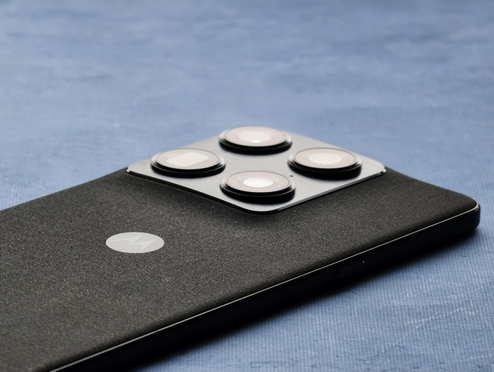 墨岚黑配色也很有巧思,其并非单调的纯黑,而是采用双层织物纹理聚氨酯材质,呈现出类似高定西装的混色层次感,远观是沉稳大气的黑色,近看则能捕捉到细微的纹理光泽,避免了指纹残留的同时,触感温润细腻。中框选用拉丝高强度航空铝合金,搭配恰到好处的联想moto LOGO点缀,兼顾了抗摔性与视觉协调性。
