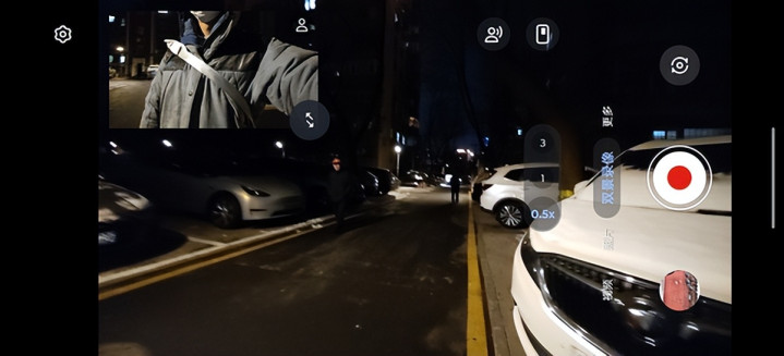 开启相机“超级变焦专业版”开关后,双景vlog的体验进一步升级。如在旅行场景中,后置拍美食特写,前置录自己的试吃点评,布局调整功能可让美食画面占比更大,同时保留表情反应;徒步拍摄时,3.5°云台级AI防抖能力让边走边录的风景+人像视频丝滑流畅,不同录制期间都可支持一键切换前后摄画面,也能自由调整画面布局,选择画中画、左右分屏或上下分屏模式,适配不同剪辑需求。