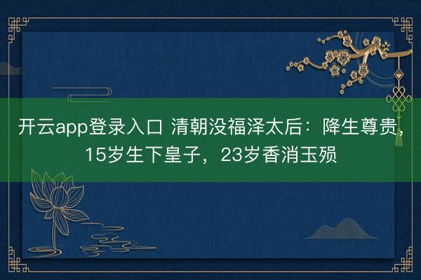 开云app登录入口 清朝没福泽太后:降生尊贵,15岁生下皇子,23岁香消玉殒
