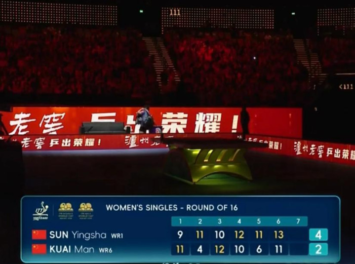 女单1/8决赛,蒯曼2-4不敌孙颖莎,停步16强。