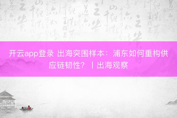 开云app登录 出海突围样本:浦东如何重构供应链韧性?丨出海观察
