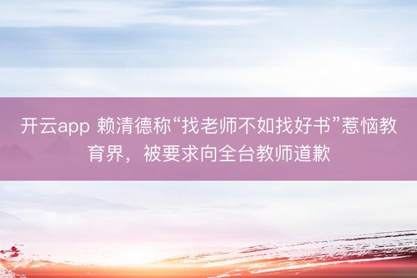 开云app 赖清德称“找老师不如找好书”惹恼教育界,被要求向全台教师道歉