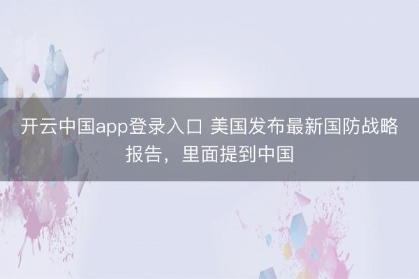 开云中国app登录入口 美国发布最新国防战略报告,里面提到中国