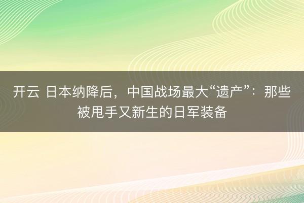 开云 日本纳降后,中国战场最大“遗产”:那些被甩手又新生的日军装备