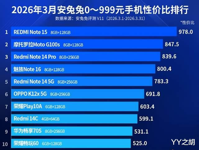 具体来说,在2026年3月份安兔兔0—999元手机性价比排名榜中,REDMI Note15和摩托罗拉Moto G100s分列第又名和第二名。在安兔兔平台上,这两款智妙手机的性价比评分别离为978.0分和847.5分。其中,摩托罗拉Moto G100s剿袭6.8英寸LCD屏幕泄漏成果出色,赞助144Hz高刷新率让滑动操作相当运动。至极值得一提的是它的阳光屏技能,在户外强光下如故了了可见。护眼步地也很贴心,长时期使用不会感到眼疲惫。