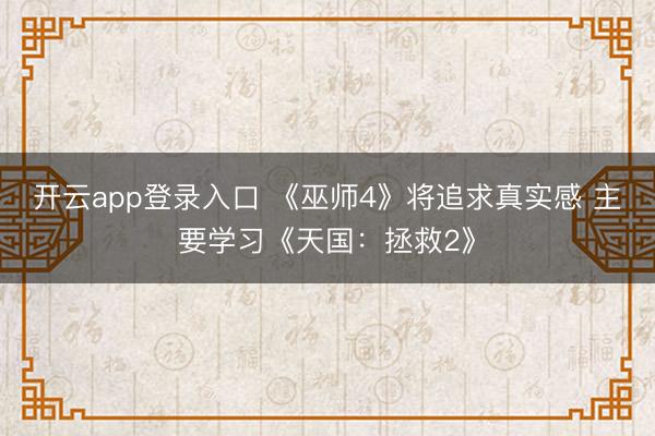 开云app登录入口 《巫师4》将追求真实感 主要学习《天国:拯救2》