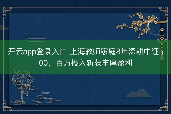 开云app登录入口 上海教师家庭8年深耕中证500,百万投入斩获丰厚盈利