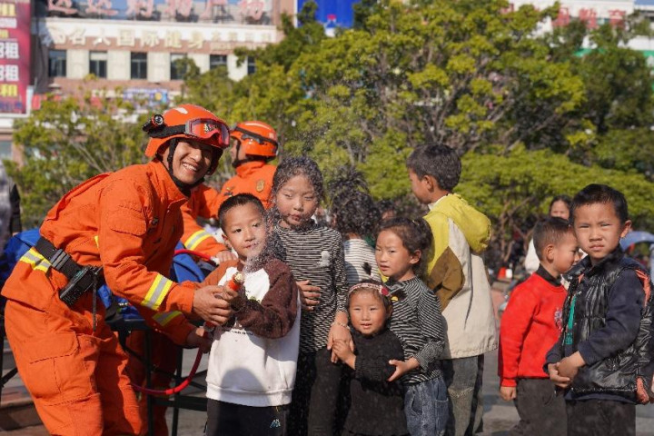 在凉山彝族自治州冕宁县,消防救援人员的身影活跃在红军广场和若水镇的街巷村寨。“老乡,上山可不能带火种,你看这宣传单上写得很清楚,一点火星在干燥天气里就可能引发大火。”在红军广场,部分彝族消防员用“彝语”向周围群众讲解着森林防火知识。