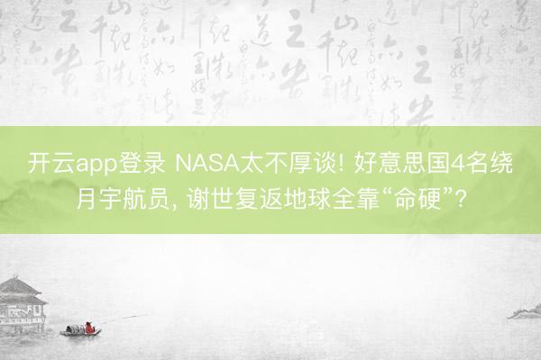 开云app登录 NASA太不厚谈! 好意思国4名绕月宇航员, 谢世复返地球全靠“命硬”?