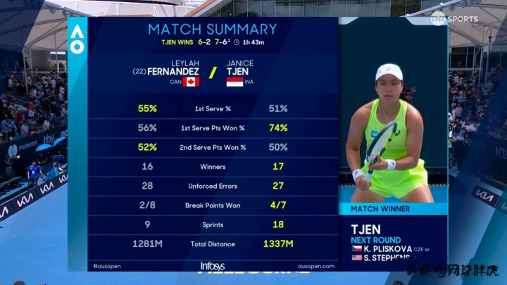 开云 印尼新星简妮丝·陈两盘爆冷淘汰费尔南德斯, 强势开启澳网之旅