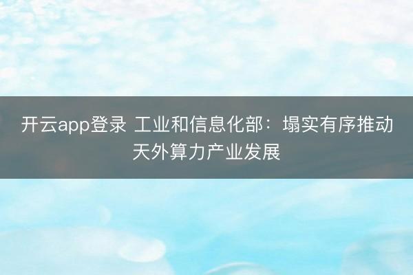 开云app登录 工业和信息化部:塌实有序推动天外算力产业发展