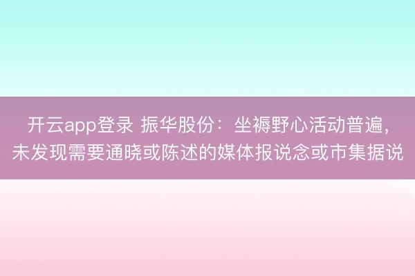 开云app登录 振华股份:坐褥野心活动普遍,未发现需要通晓或陈述的媒体报说念或市集据说