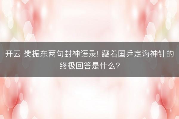开云 樊振东两句封神语录! 藏着国乒定海神针的终极回答是什么?