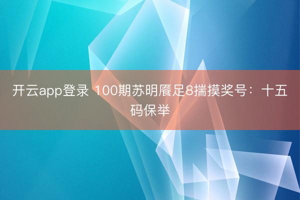 开云app登录 100期苏明餍足8揣摸奖号:十五码保举