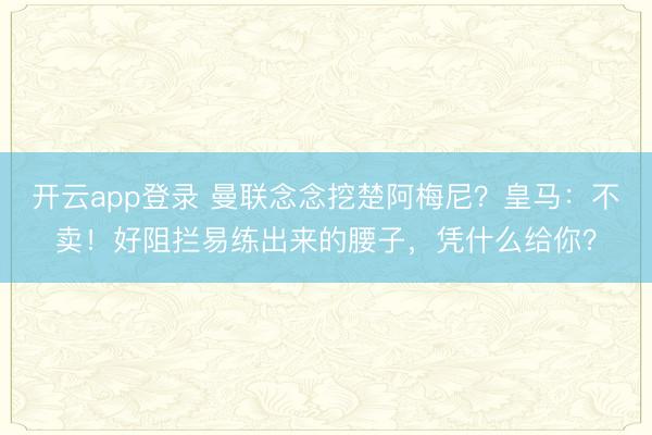 开云app登录 曼联念念挖楚阿梅尼?皇马:不卖!好阻拦易练出来的腰子,凭什么给你?