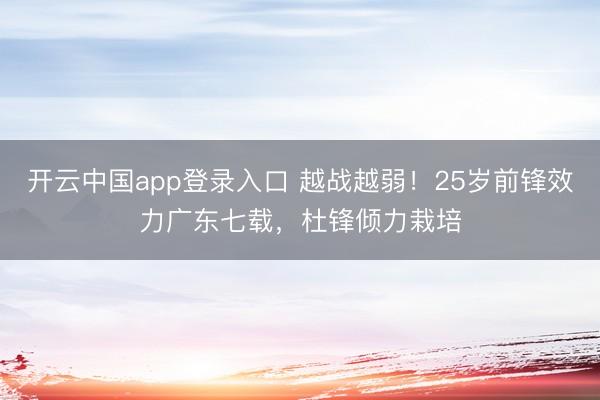 开云中国app登录入口 越战越弱!25岁前锋效力广东七载,杜锋倾力栽培