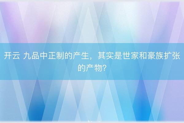 开云 九品中正制的产生,其实是世家和豪族扩张的产物?