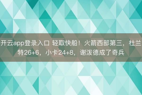 开云app登录入口 轻取快船!火箭西部第三,杜兰特26+6,小卡24+8,谢泼德成了奇兵