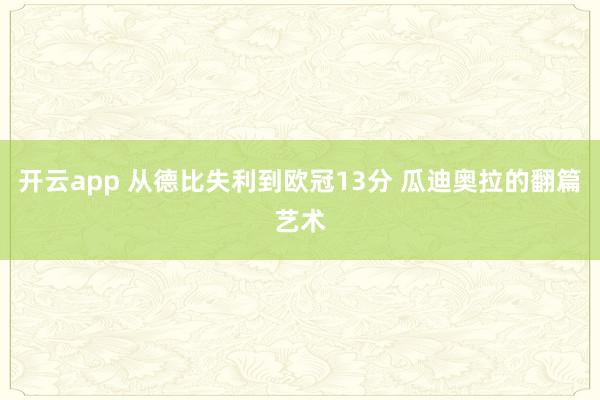开云app 从德比失利到欧冠13分 瓜迪奥拉的翻篇艺术