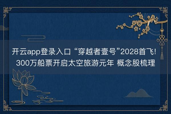 开云app登录入口 “穿越者壹号”2028首飞! 300万船票开启太空旅游元年 概念股梳理