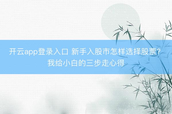 开云app登录入口 新手入股市怎样选择股票? 我给小白的三步走心得