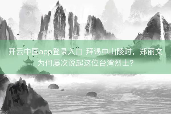 开云中国app登录入口 拜谒中山陵时,郑丽文为何屡次说起这位台湾烈士?