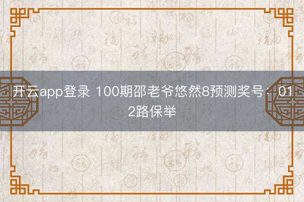 开云app登录 100期邵老爷悠然8预测奖号:012路保举